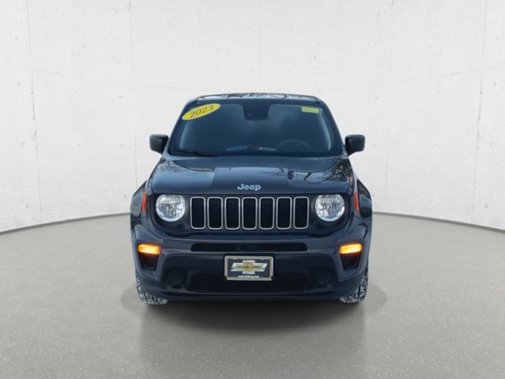 Lamoille Valley Chevrolet is proud to present you with another True Market Priced Pre-Owned Vehicle. This 2023 Jeep Renegade Latitude is loaded with the following Factory Options: Quick Order Package 22B, 17" x 7.0" Aluminum Wheels, 3.734 Final Drive Ratio, 4-Wheel Disc Brakes, 6 Speakers, ABS brakes, Air Conditioning, Alloy wheels, AM/FM radio: SiriusXM, Anti-whiplash front head restraints, Apple CarPlay/Android Auto, Automatic temperature control, Brake assist, Cloth Bucket Seats, Compass, Delay-off headlights, Driver door bin, Driver vanity mirror, Dual front impact airbags, Dual front side impact airbags, Electronic Stability Control, Emergency communication system: SiriusXM Guardian, Four wheel independent suspension, Front anti-roll bar, Front Bucket Seats, Front Center Armrest, Front dual zone A/C, Front reading lights, Heated door mirrors, Illuminated entry, Knee airbag, Low tire pressure warning, Navigation System, Normal Duty Suspension, Occupant sensing airbag, Outside temperature display, Overhead airbag, ParkView Rear Back-Up Camera, Passenger door bin, Passenger vanity mirror, Power door mirrors, Power steering, Power windows, Radio data system, Radio: Uconnect 4C Nav w/8.4" Display, Rear anti-roll bar, Rear window defroster, Rear window wiper, Remote keyless entry, Roof rack: rails only, Security system, Speed control, Split folding rear seat, Spoiler, Steering wheel mounted audio controls, Tachometer, Telescoping steering wheel, Tilt steering wheel, Traction control, Trip computer, Variably intermittent wipers, and Voltmeter!!
